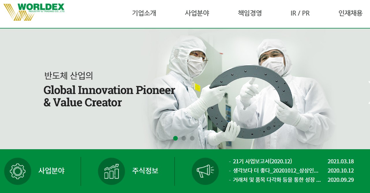 반도체 소모성 부품 회사인 '월덱스(WORLDEX)'에 알아보려고 해요.