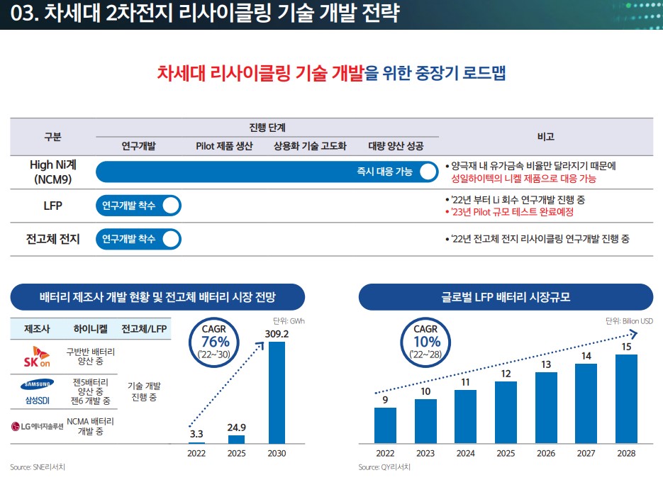2) 차세대 배터리 리사이클링 기술 개발(High Ni계(NCM9), LFP, 전고체전지)