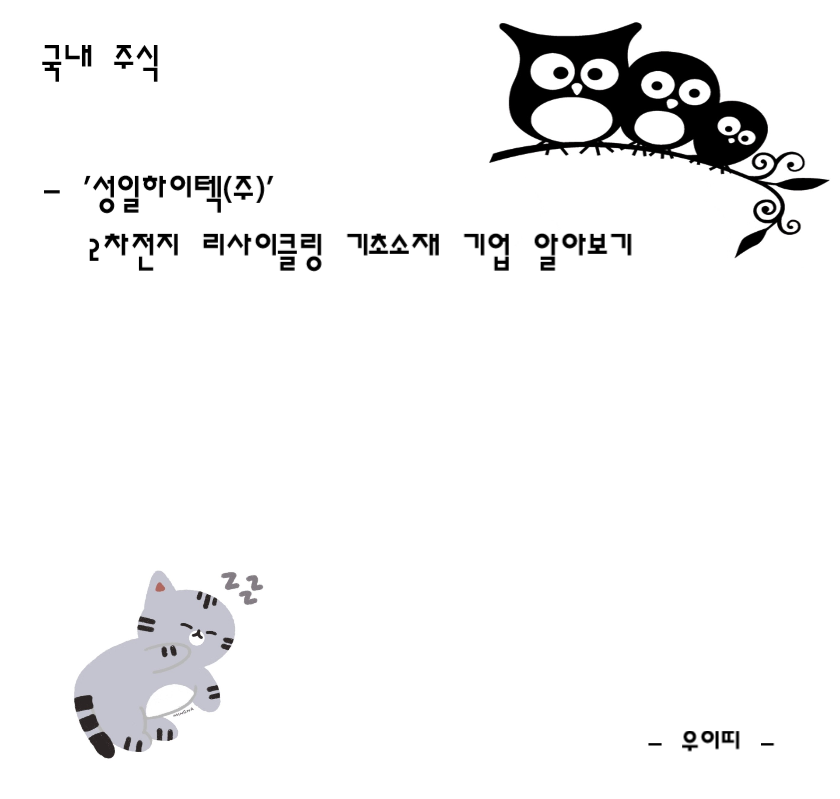 리튬 이차전지 RECYCLING 회사인 '성일하이텍'에 대해 알아보려고 해요.