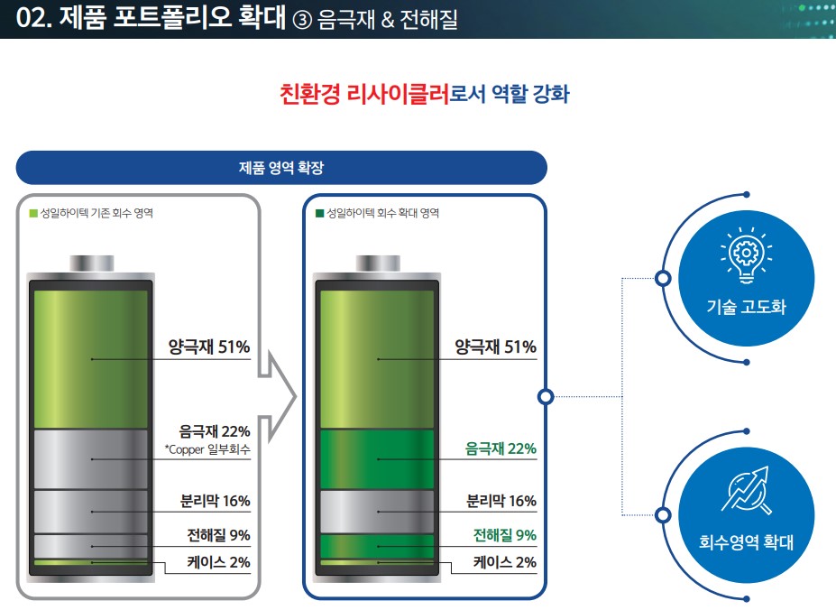1) 리사이클링 제품 포트폴리오 확대(고순도구리, 음극재, 전해질)