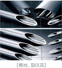 1. 튜브(Tube) : 용접 이음매가 없는 스테인레스 스틸 강관으로, 직경으로 제품을 구분 2. 파이프(Pipe) : 스테인레스 스틸 박판을 말아서 양 끝단을 용접해서 만든 강관으로, 직경으로 제품을 구분. 15A, 20A, 25A, 40A, 50A, 65A, 80A, 100A, 150A, 200A, 250A, 300A, 400A, 500A, 600A 등의 제품 구성 (A는 파이프 호칭경으로, 밀리미터로 파이프의 내경을 표시할 때 사용하는 부호) |