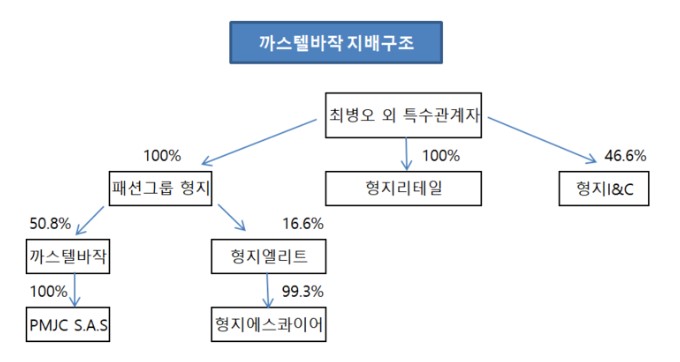최준호 까스텔바작, 형지엘리트 사장은 형지엘리트(617주, 0.0%), 형지I&C(1.76%), 형지리테일(20.0%)을 보유