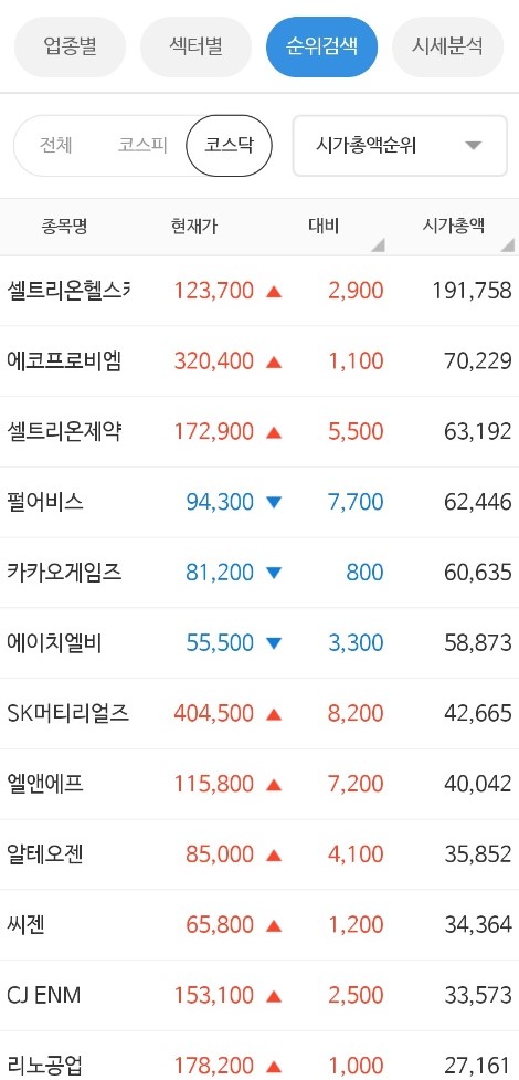 순위변동으로 주식시장이 어떤 곳에 관심이 많고 투자가 많이 이루어지는지를 확인하기 위함이에요.