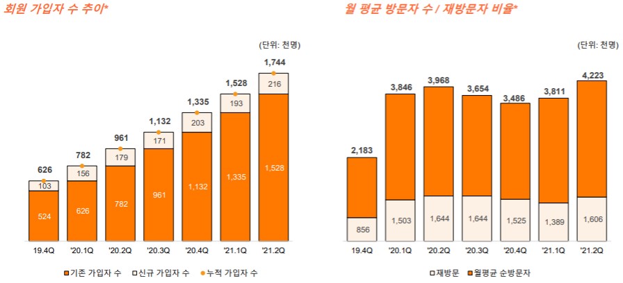 현재 젝시믹스 플랫폼의 누적 회원가입자수는 180만 이상이고 월 평균 순 방문자 수는 400만 이상이라고 해요.