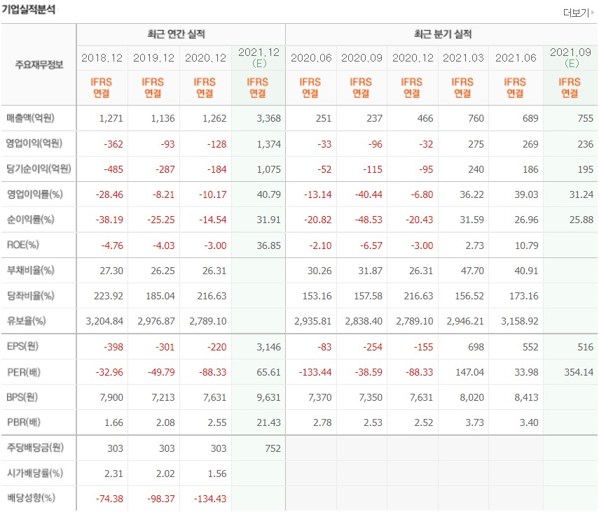 2021년 들어오면서 흑자전환에 성공햇네요.