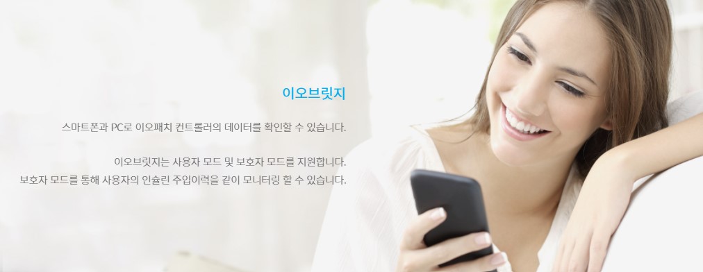 ⑤ 이오브릿지 : 스마트폰과 PC로 이오패치 컨트롤러의 데이터를 확인할수 있고 사용자 모드 및 보호자 모드를 지원