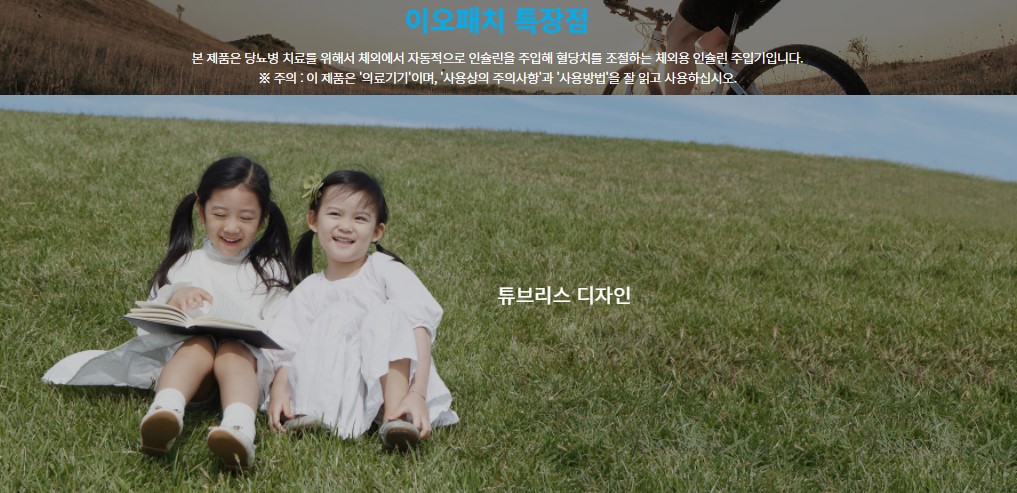 현재 개발이 완료된 '이오패치(인슐린 관리 시스템)'로 최대 84시간 사용가능한 패치형 체외용 인슐린 주입기와 블루투스 통신으로 연결된 스마트 리모컨(ADM), 그리고 인슐린 주입 이력을 모니터링 할 수 있는 이오브릿지로 구성되어 쉽고 간편하게 기초 주입과 볼루스 주입이 가능하다고 해요.