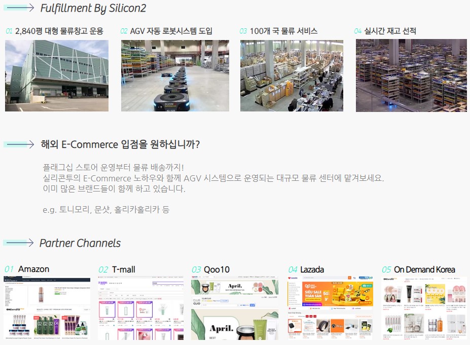 실리콘투는 브랜드 컨설팅 / 퍼블리싱 / 마케팅 및 판매 전략 / 물류 서비스를 제공하고 있는데요.