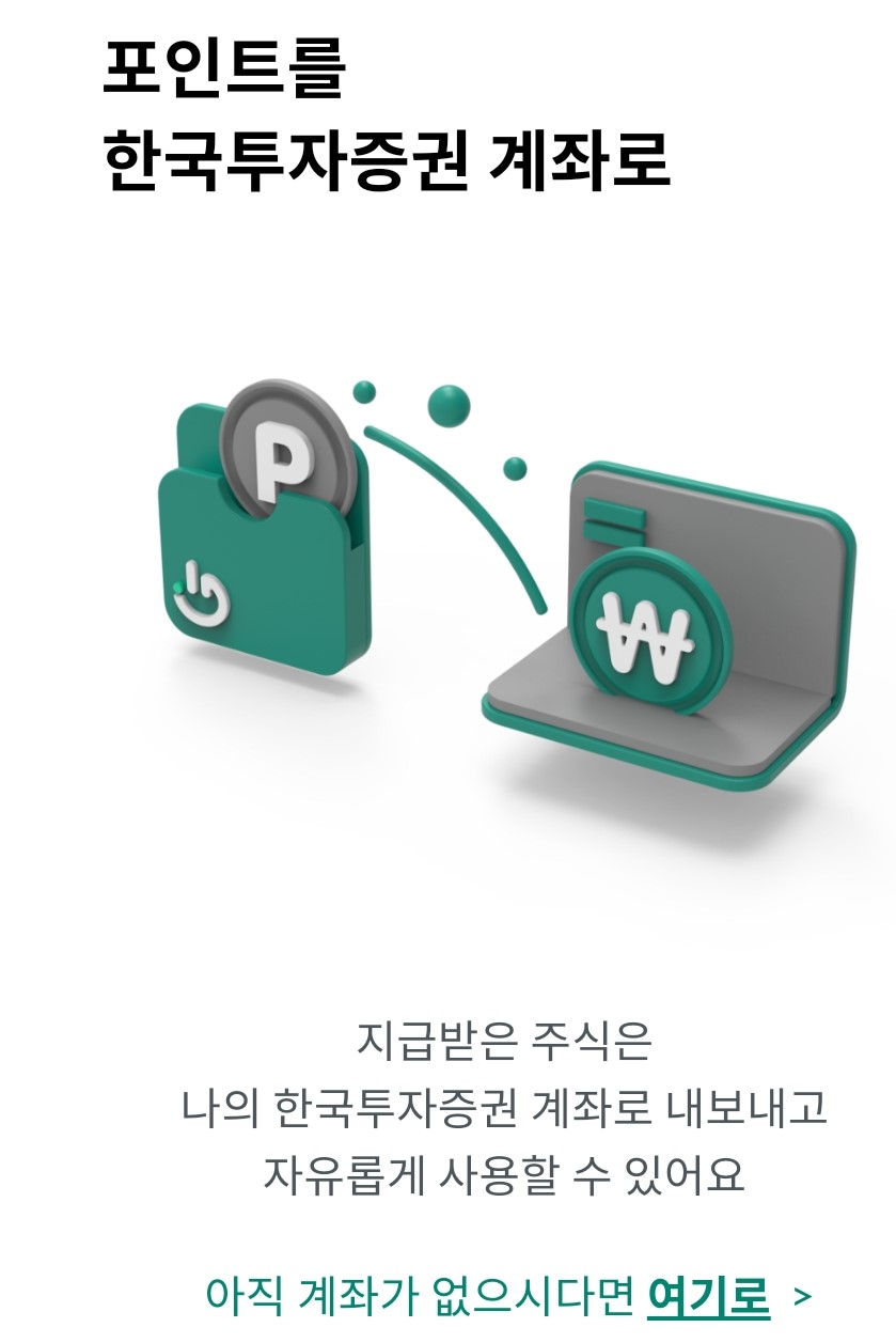 포인트는 한국투자증권 계좌로 보내서 현금처럼 사용할 수 있다고 해요.
