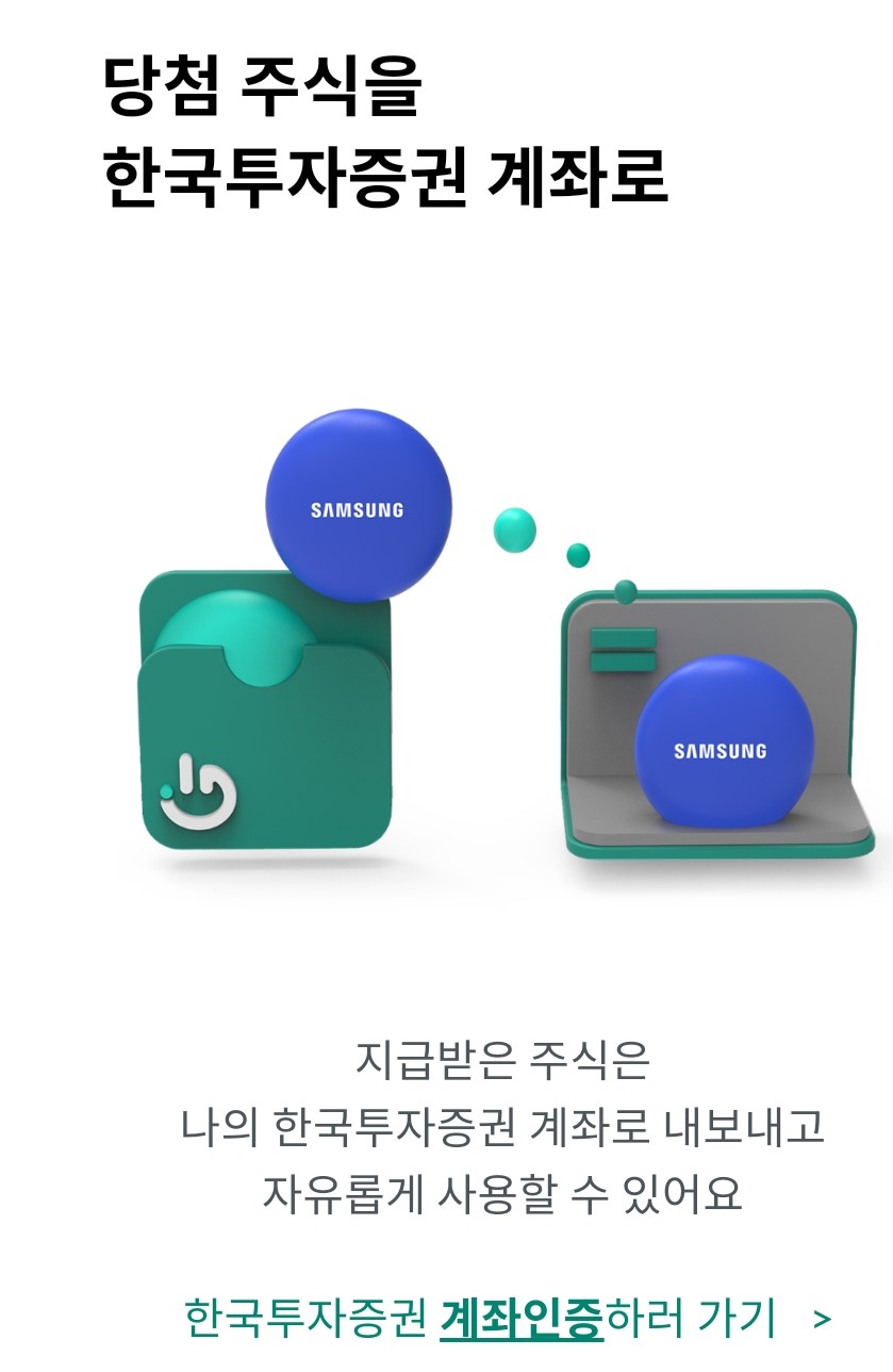 당첨 주식은 한국투자증권 계좌로 내보내서 받으실 수 있다고 해요.