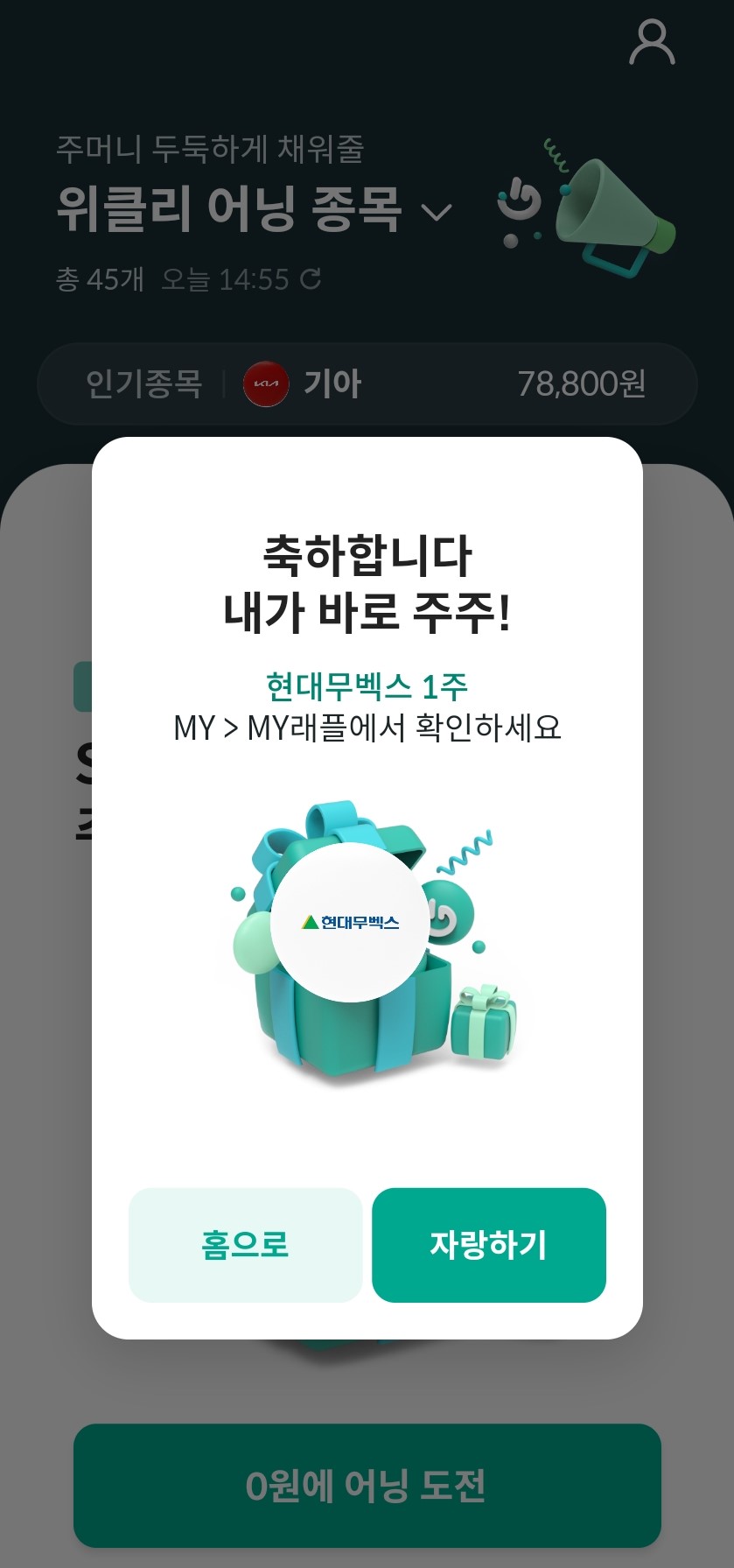 현대무벡스 1주에 당첨되었어요.