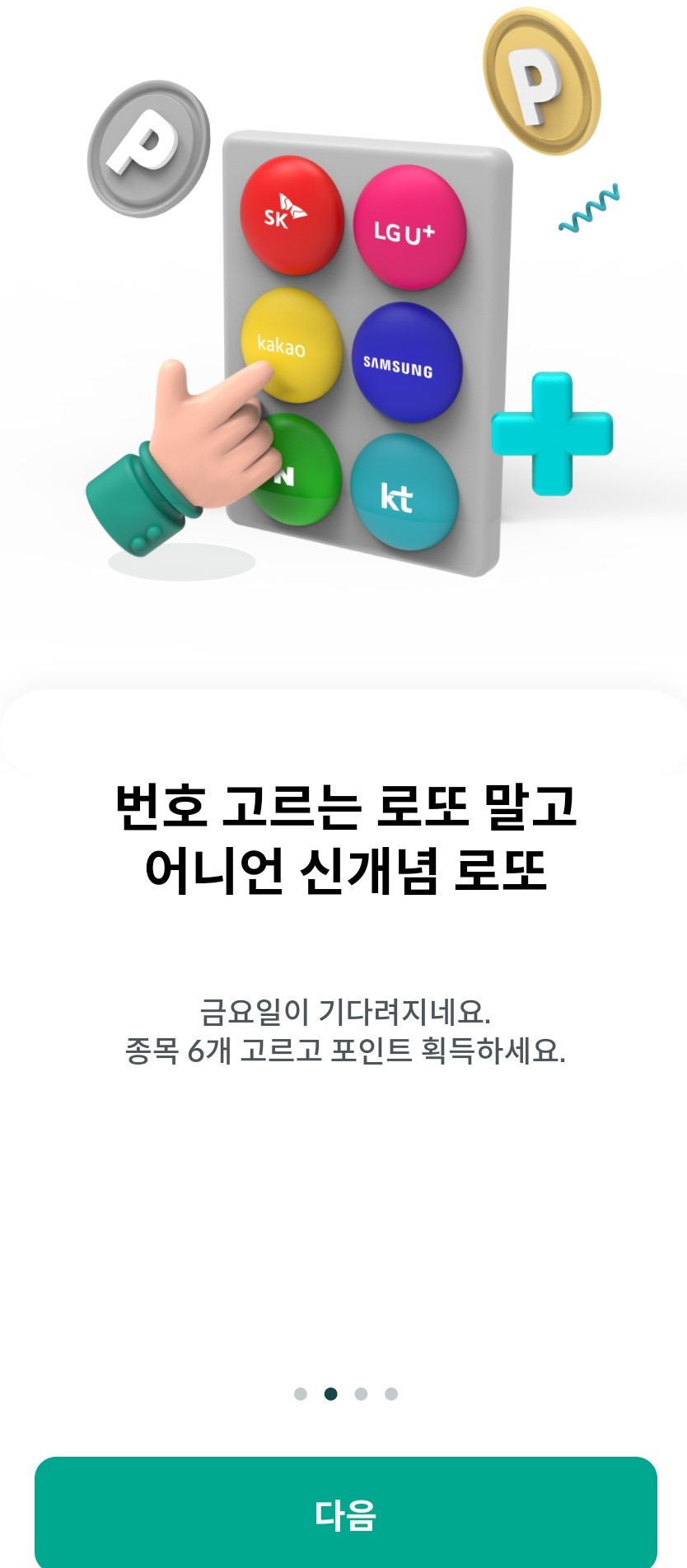 2. 번호 고르는 로또 말고 어니언 신개념 로또 : 금요일이 기다려지네요. 종목 6개 고르고 포인트 획득하세요.