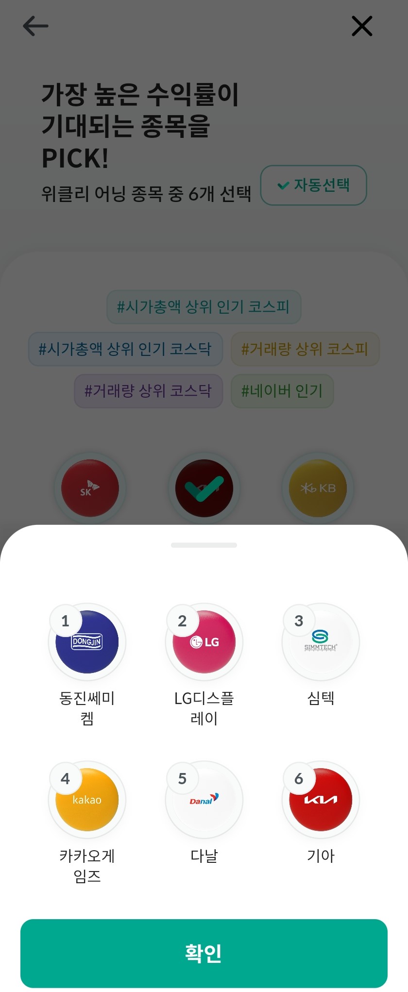 위클리 어닝 45종목 중 6개를 골라주시면 되고요.