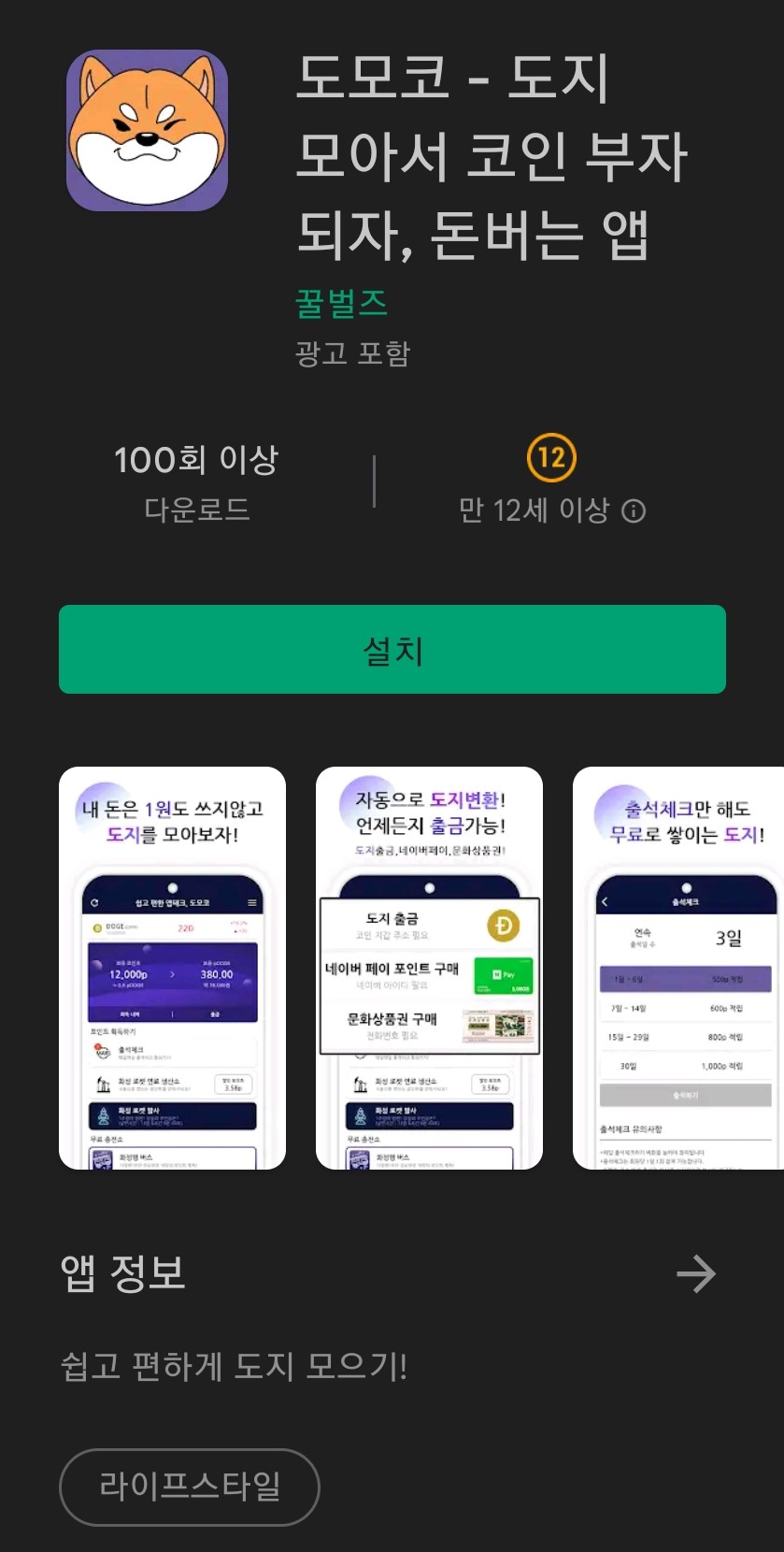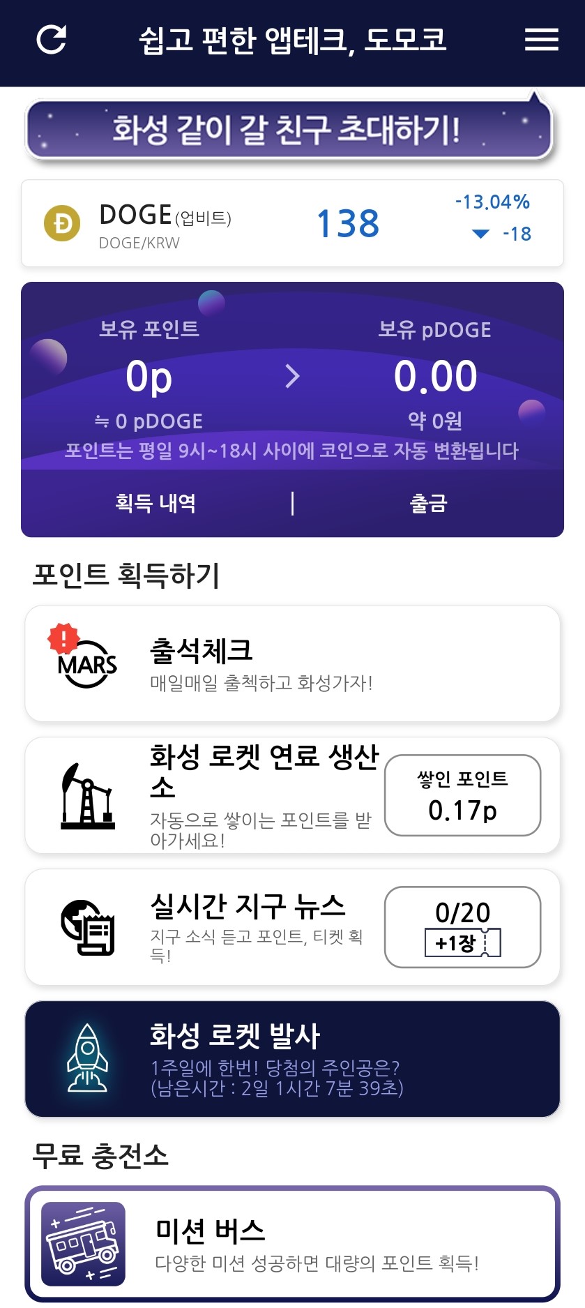 포인트를 적립하고 이를 통해 도지코인으로 전환할 수 있는 앱테크에요.