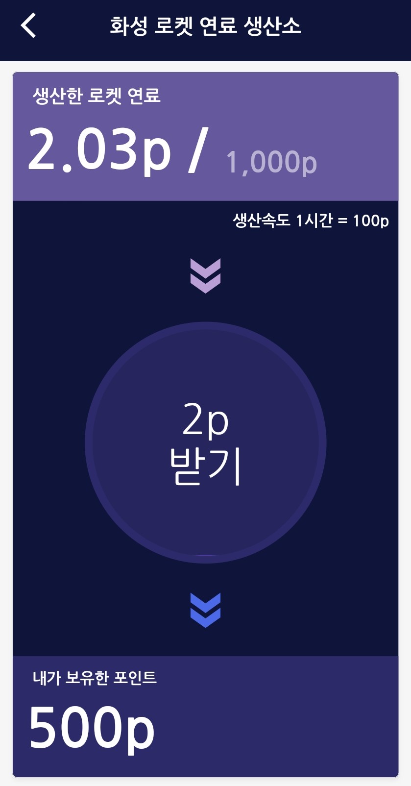 ② 화성 로켓 연료 생산소(자동으로 쌓이는 포인트를 받아가세요!)