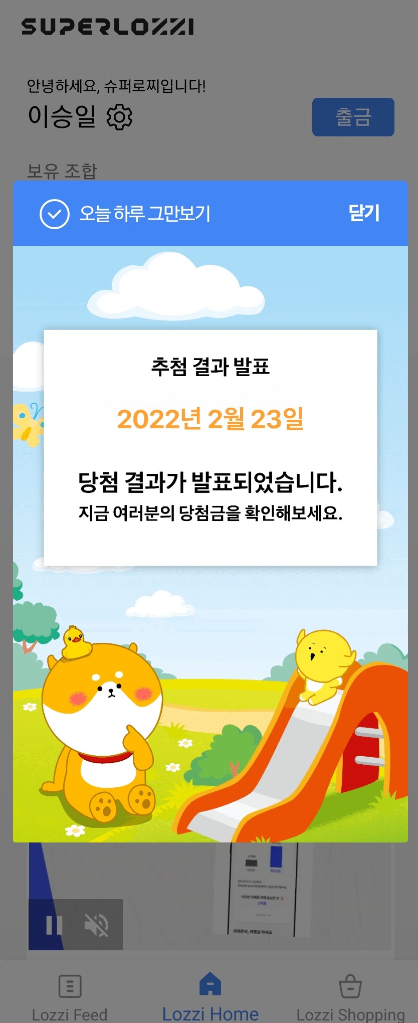 안녕하세요. 우이띠에요. '슈퍼로찌'라는 앱테크에 대해 소개해드리려고 해요. 이용자들이 수익을 로또추첨방식으로 매주 토요일 오후 8시 기준으로 발표가 되요. 자세한 내용은 밑에서 적어보