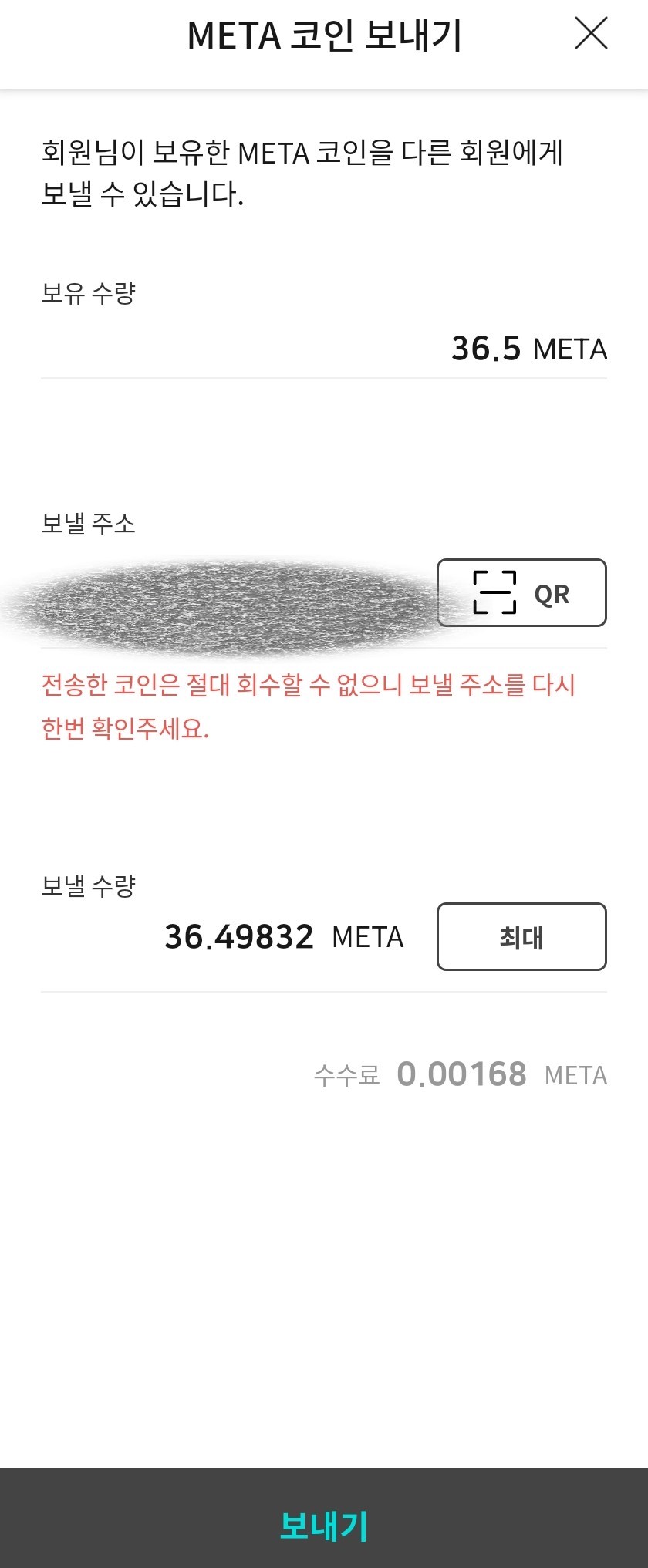 또 한가지 META 코인을 코인 거래소로 보내서 현금화하는 방법이 있어요.