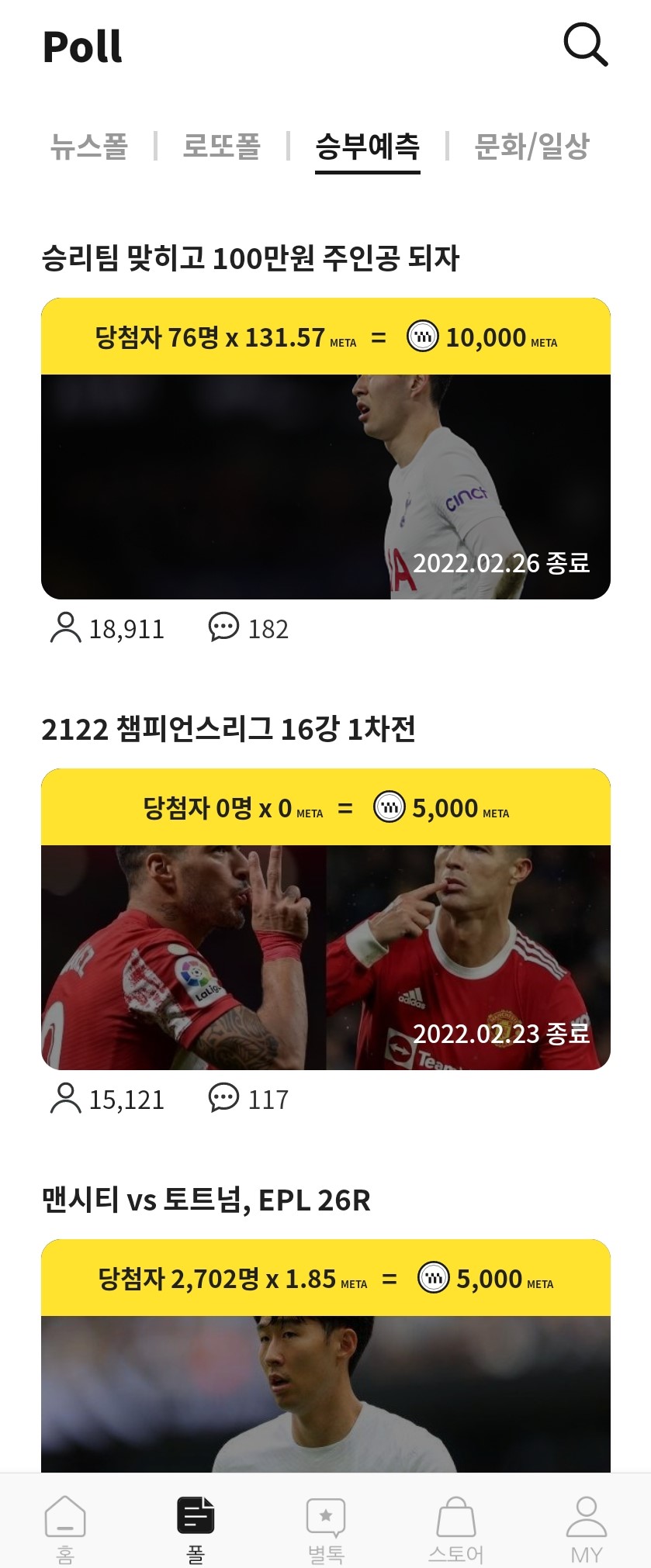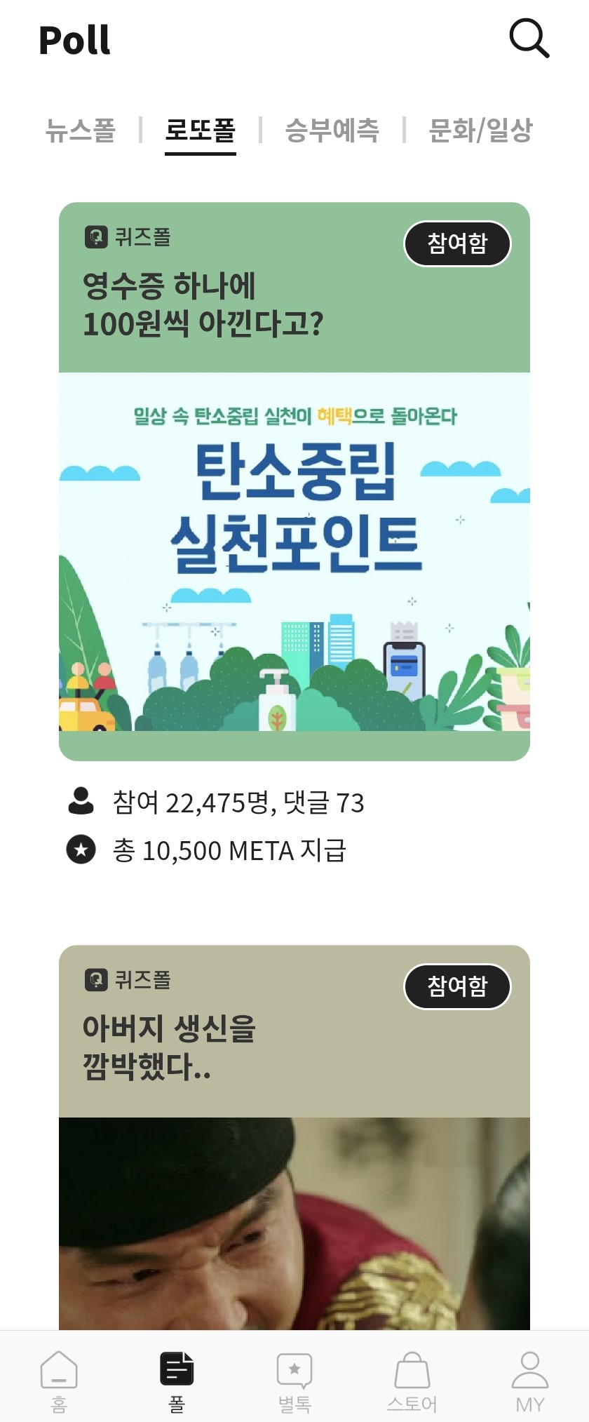 폴(Poll)은 뉴스폴, 로또폴, 승부예측, 문화/일상으로 나누어져있어요.